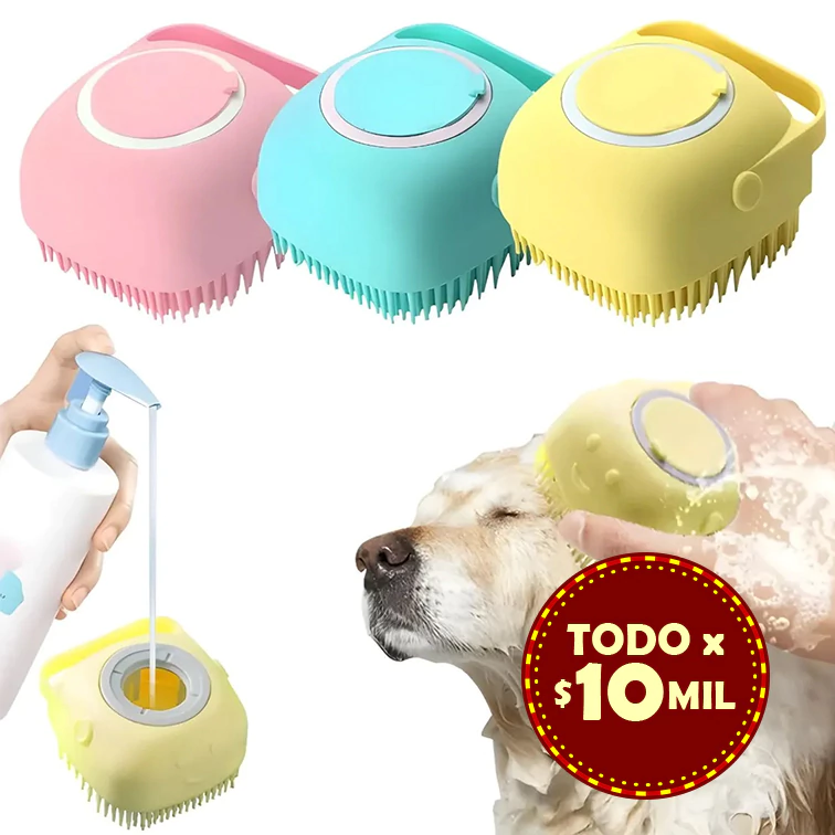 Cepillo de silicona para mascotas con dispensador de shampoo